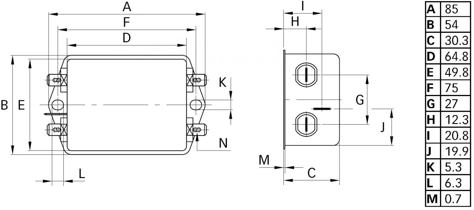 מסנן EMC / RFI עם חיבור לפאנל - סדרה 6A - FN2090B