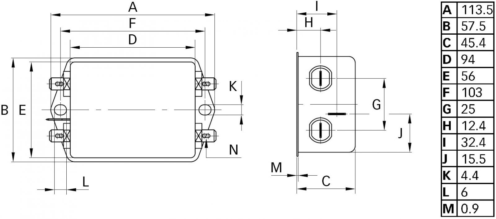 מסנן EMC / RFI עם חיבור לפאנל - סדרה 10A - FN2090B