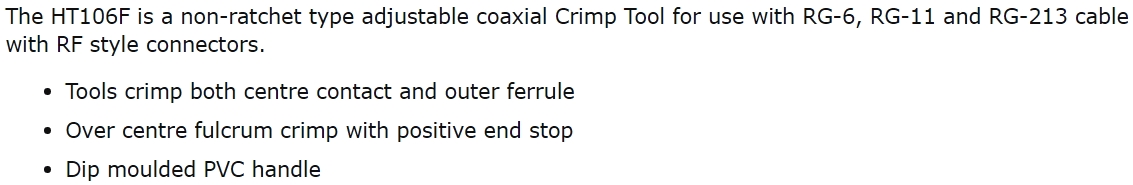 | 1864143 לוחץ לכבלים קואקסיאליים - RG6 , RG8 , RG11 , RG213 | MULTICOMP | לוחץ לכבלים קואקסיאליים - RG6 , RG8 , RG11 , RG213 ♦ מתאים למחברים : BNC , TNC , N-TYPE , UHF ... כלי עבודה ידניים » לוחצים לכבלים | כמות |