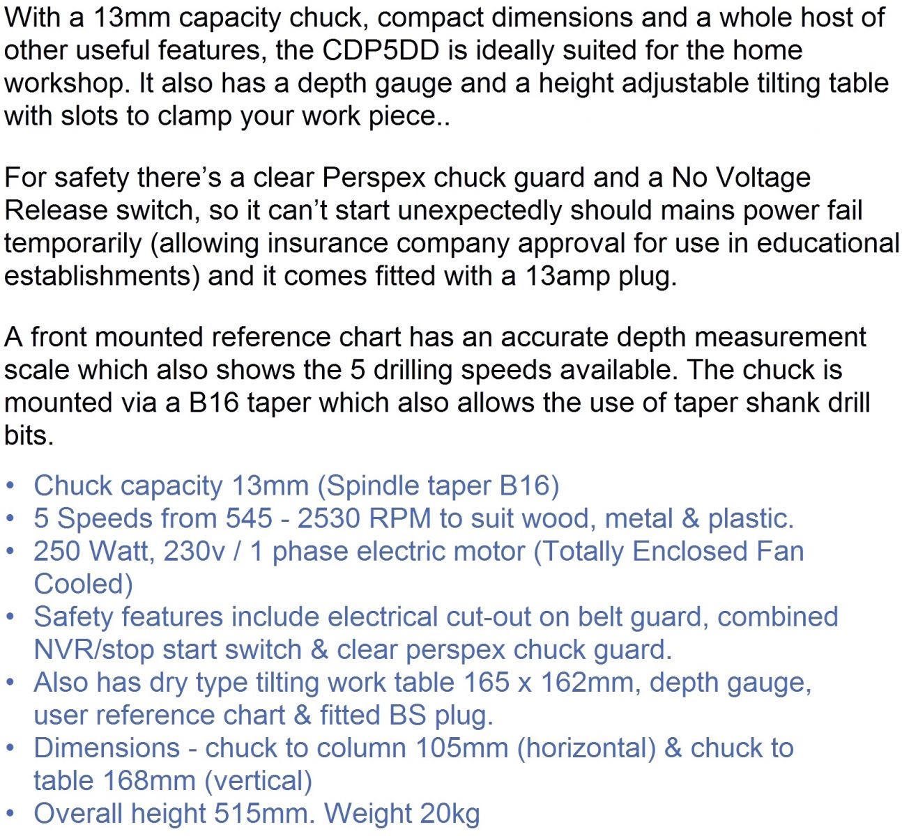 | 0679493 מקדחת עמוד שולחנית מקצועית - CLARKE CDP5DD | CLARKE | מקדחת עמוד שולחנית מקצועית - CLARKE CDP5DD ♦ הספק : 250W♦ מהירות סיבוב : 545RPM - 2530R... כלי עבודה נטענים / חשמליים » מברגות / מקדחות / פטישונים | לא ניתן להזמין - אזל המלאי |