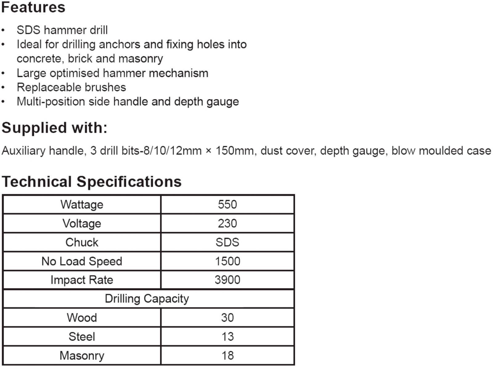 | 7423012 מקדחה חשמלית דופקת 550W SDS | DURATOOL | מקדחה חשמלית דופקת 550W SDS ♦ יכולת קידוח בעץ : 30MM♦ יכולת קידוח בפלדה : 13MM... כלי עבודה נטענים / חשמליים » מברגות / מקדחות / פטישונים | כמות |