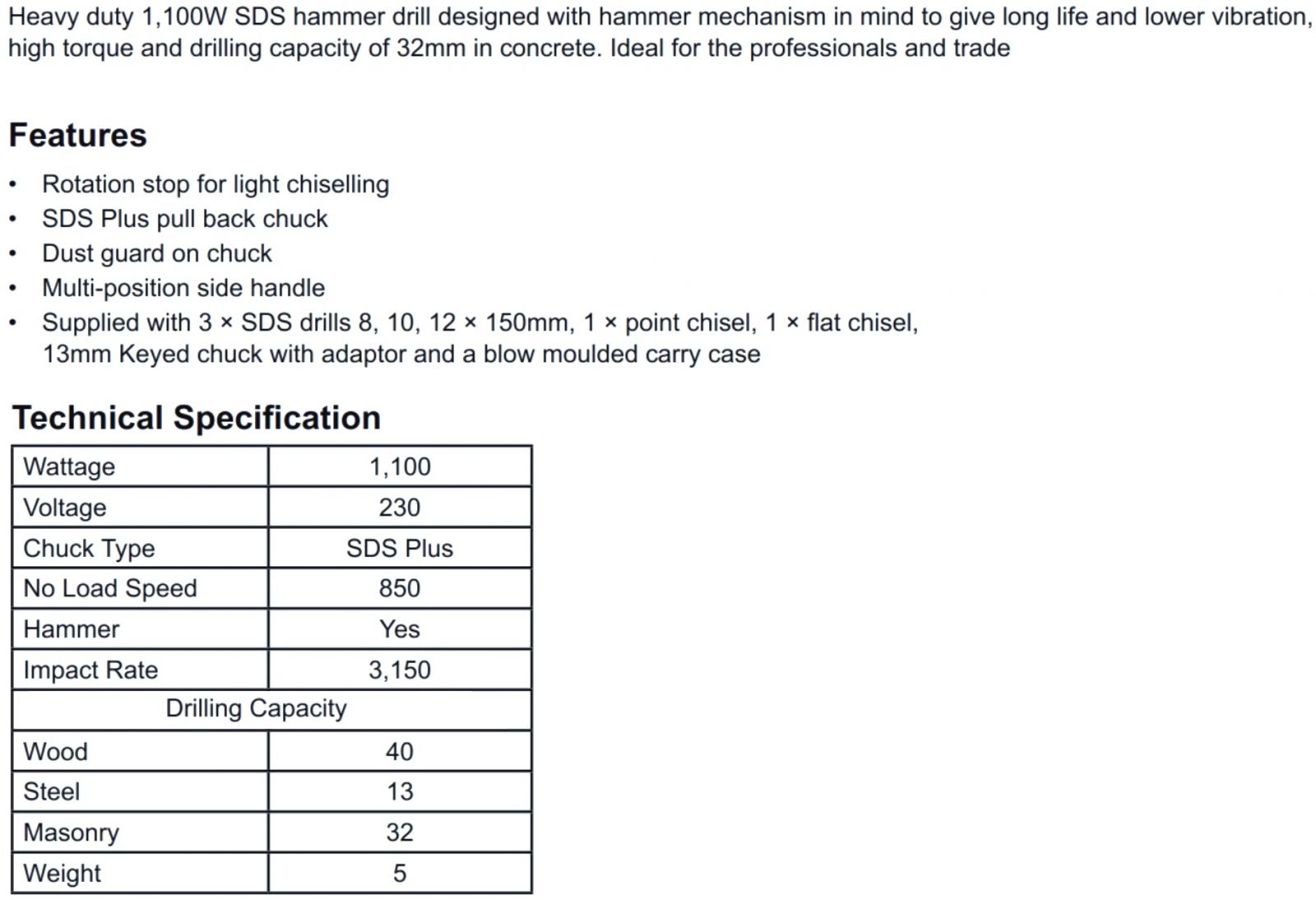 | 6223012 מקדחה חשמלית דופקת 1100W SDS | DURATOOL | מקדחה חשמלית דופקת 1100W SDS ♦ יכולת קידוח בעץ : 40MM♦ כולת קידוח בפלדה : 13MM... כלי עבודה נטענים / חשמליים » מברגות / מקדחות / פטישונים | כמות |