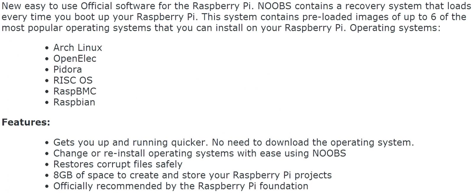 מערכת הפעלה NOOBS עבור RASPBERRY PI ♦ המערכת מובנית על כרטיס מסוג MICROSD 8GB♦ ...