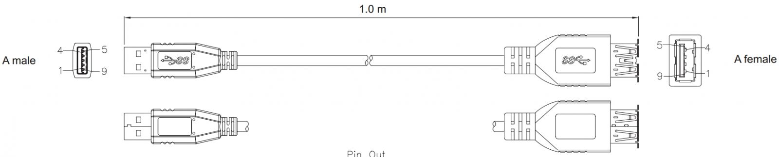 כבל 1M - A(M) ~ A(F) - USB 3.0