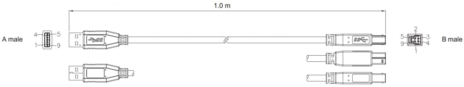 כבל 1M - A(M) ~ B(M) - USB 3.0