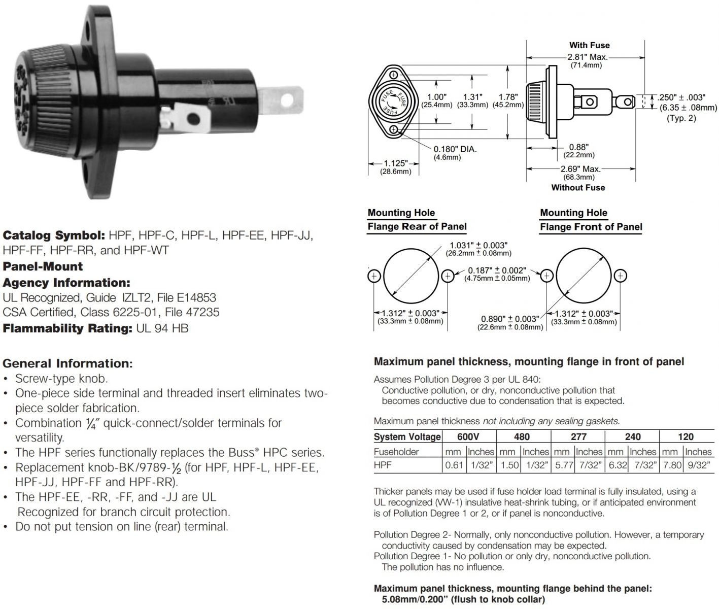 | 1107831 בית פיוז לפנל - 10X38MM | COOPER BUSSMANN | בית פיוז לפנל - 10X38MM ♦ סוג סגירה : הברגה♦ מתח מקסימלי : 600VDC , 600VAC... רכיבי אלקטרוניקה » פיוזים/בתי פיוזים/תושבות לפיוזים | כמות |