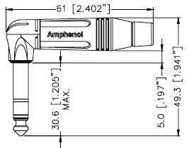 מחבר PL 6.35MM זכר להלחמה לכבל - סטריאו - זוויתי שחור - AMPHENOL
