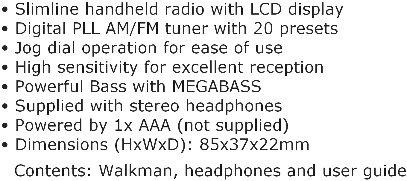 | 3112932 רדיו אוזניות נייד דיגיטלי - SONY SRF-M97 | SONY | רדיו אוזניות נייד דיגיטלי - SONY SRF-M97 ♦ קטן מימדים וקל משקל♦ טיונר PLL AM/F... Talmir Home Tech » מערכות שמע ותחנות עגינה | לא ניתן להזמין - אזל המלאי |