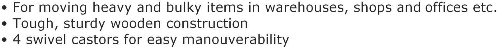 | 8512171 עגלת פלטפורמה ללא ידית - עד 300KG | DURATOOL | עגלת פלטפורמה ללא ידית - עד 300KG ♦ גלגלי גומי קשיחים 75MM♦ מידות הפלטפורמה : ... ארגזי כלים ופתרונות אחסון » פתרונות אחסון ושינוע לרכיבים וכלי עבודה | כמות |