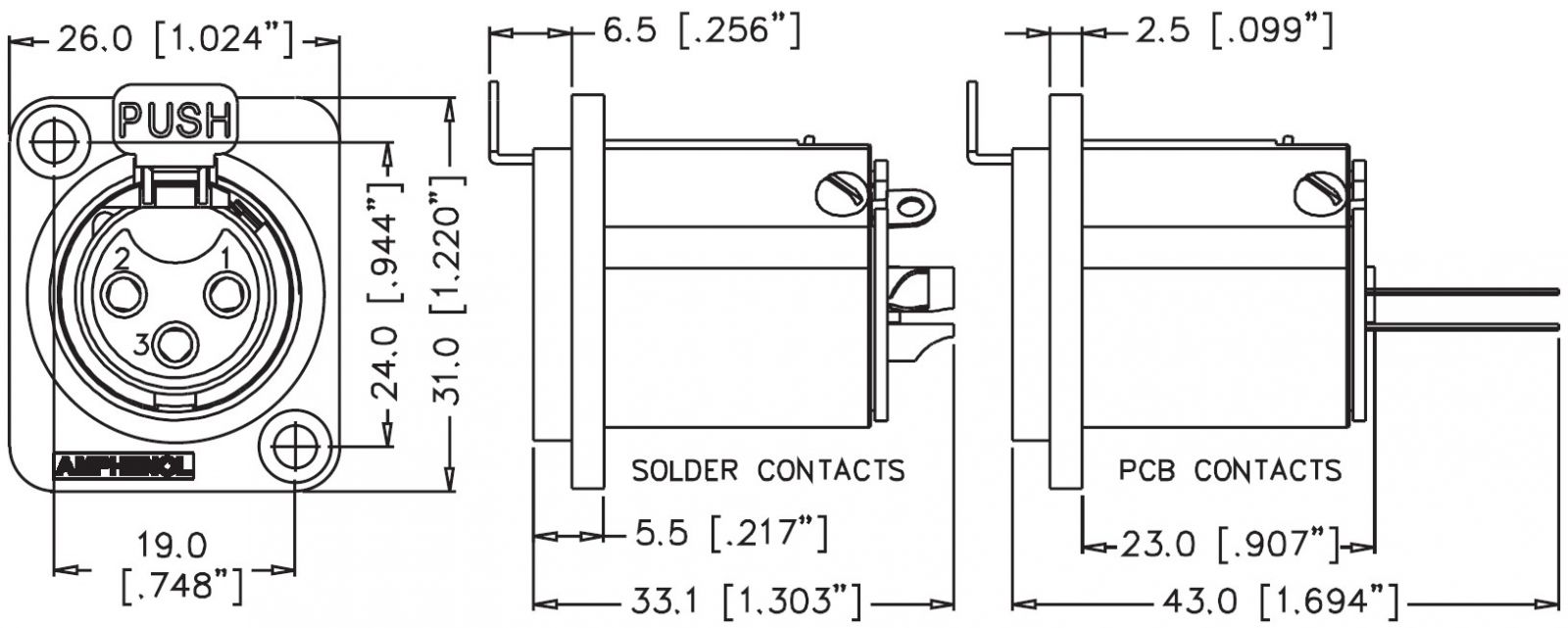מחבר XLR נקבה להלחמה לפנל - 3 מגעים - AMPHENOL AC3FDZ AMPHENOL AUDIO ועוד קונקטורים, מחברים ומתאמים. לחצו למיפרט טכני מלא. צרו קשר לייעוץ מקצועי: 04-8520233