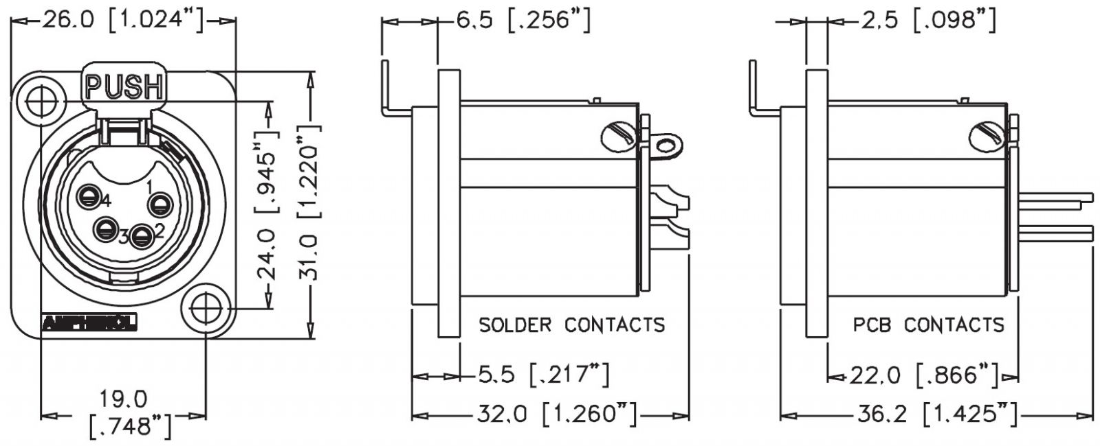 מחבר XLR נקבה להלחמה לפנל - 4 מגעים - AMPHENOL AC4FDZ AMPHENOL AUDIO ועוד קונקטורים, מחברים ומתאמים. לחצו למיפרט טכני מלא. צרו קשר לייעוץ מקצועי: 04-8520233