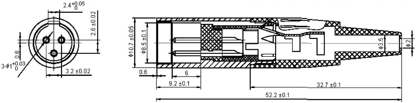 מחבר MINI XLR זכר להלחמה לכבל - 3 מגעים