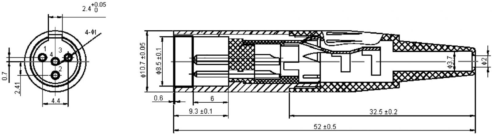 מחבר MINI XLR זכר להלחמה לכבל - 4 מגעים