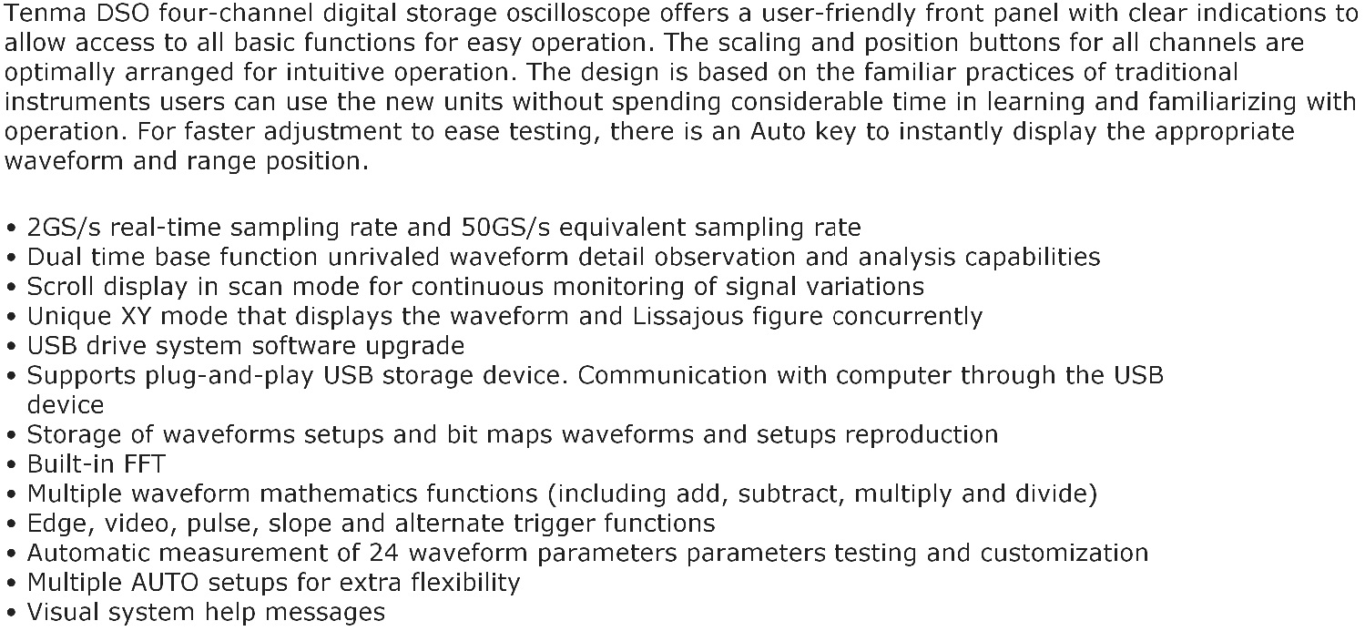 | 4281602 אוסילוסקופ שולחני דיגיטלי - 4 ערוצים - 200MHZ - 2GSPS | TENMA | אוסילוסקופ שולחני דיגיטלי - 4 ערוצים - 200MHZ - 2GSPS ... ציוד בדיקה ומכשירי מדידה » אוסצילוסקופים למעבדה | לא ניתן להזמין - אזל המלאי |
