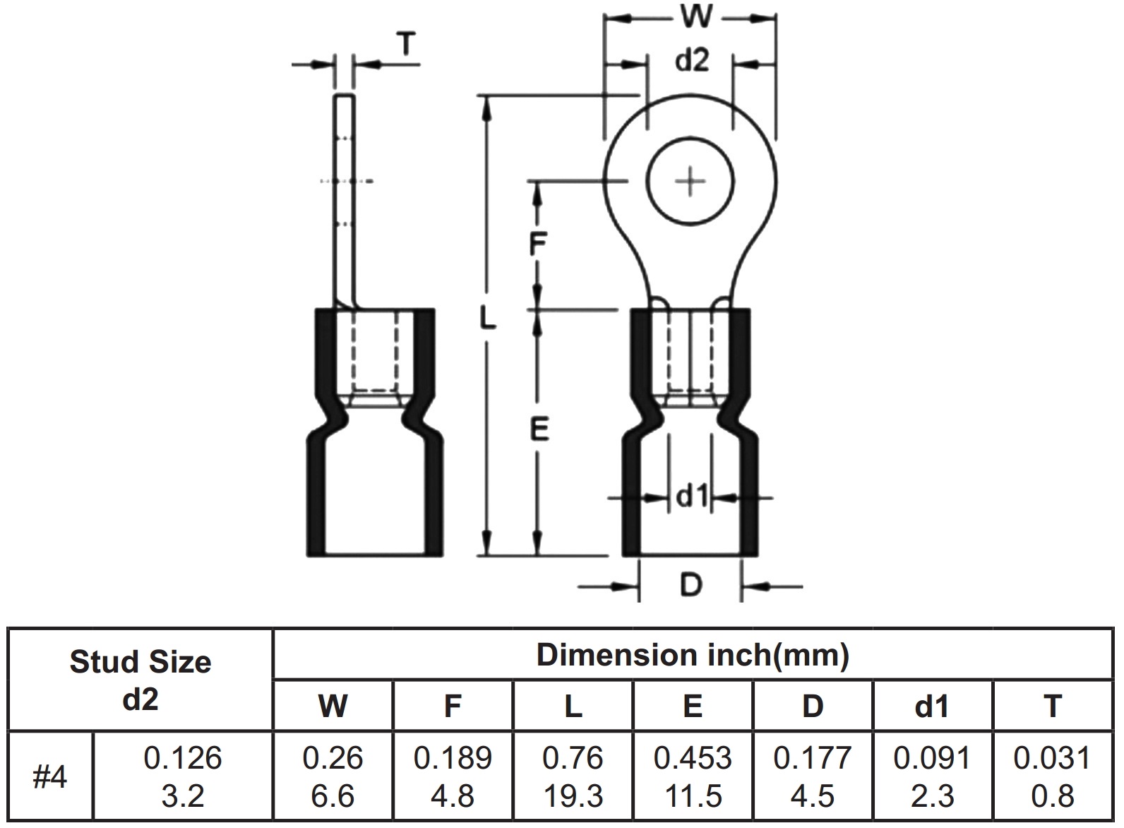 ♦ עבור כבלים : 1.0-2.6MM , 16-14AWG